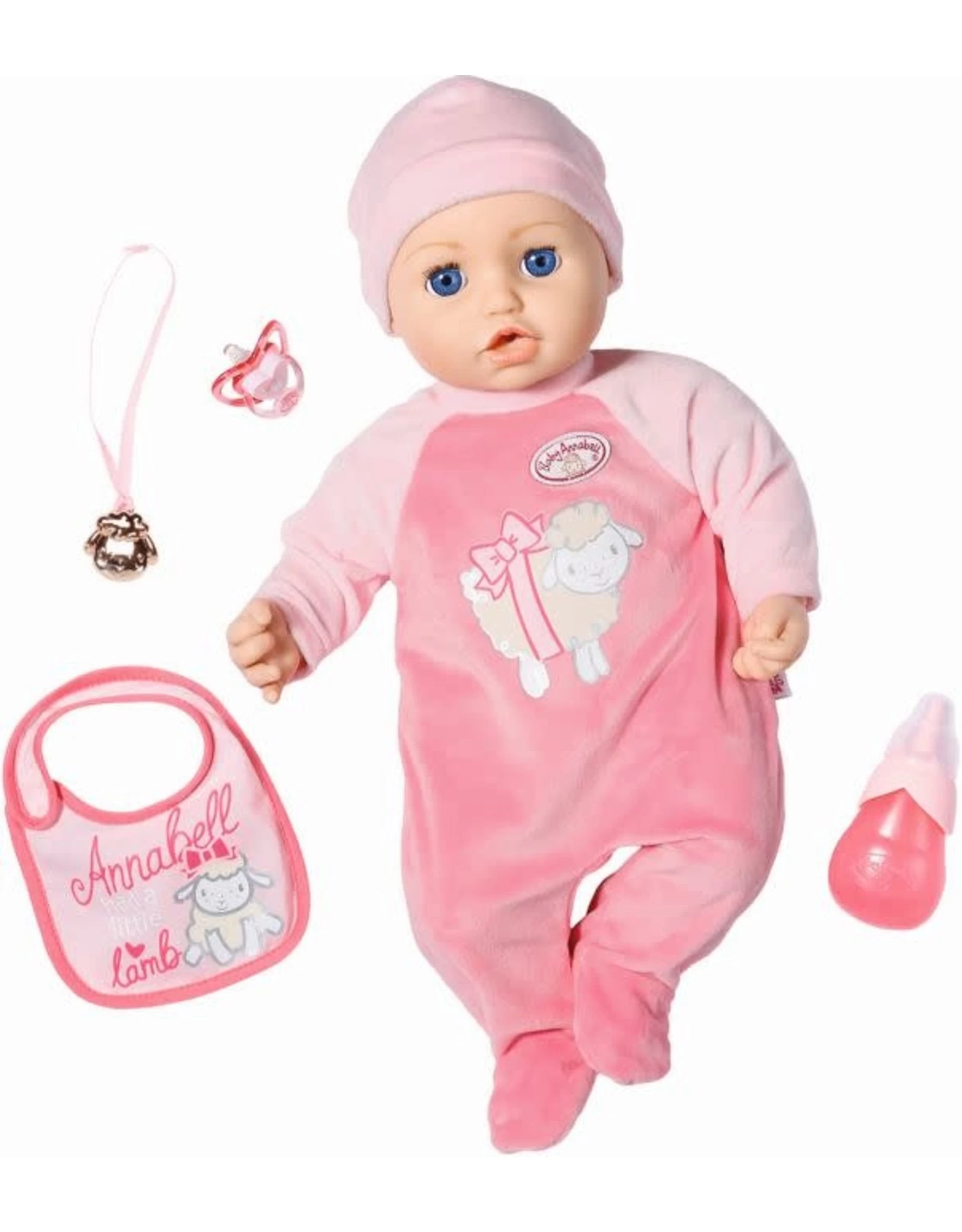 Baby Annabell Annabell (43 cm) met rompertje en muts. Inclusief slabbetje, flesje, speentje en halsketting.