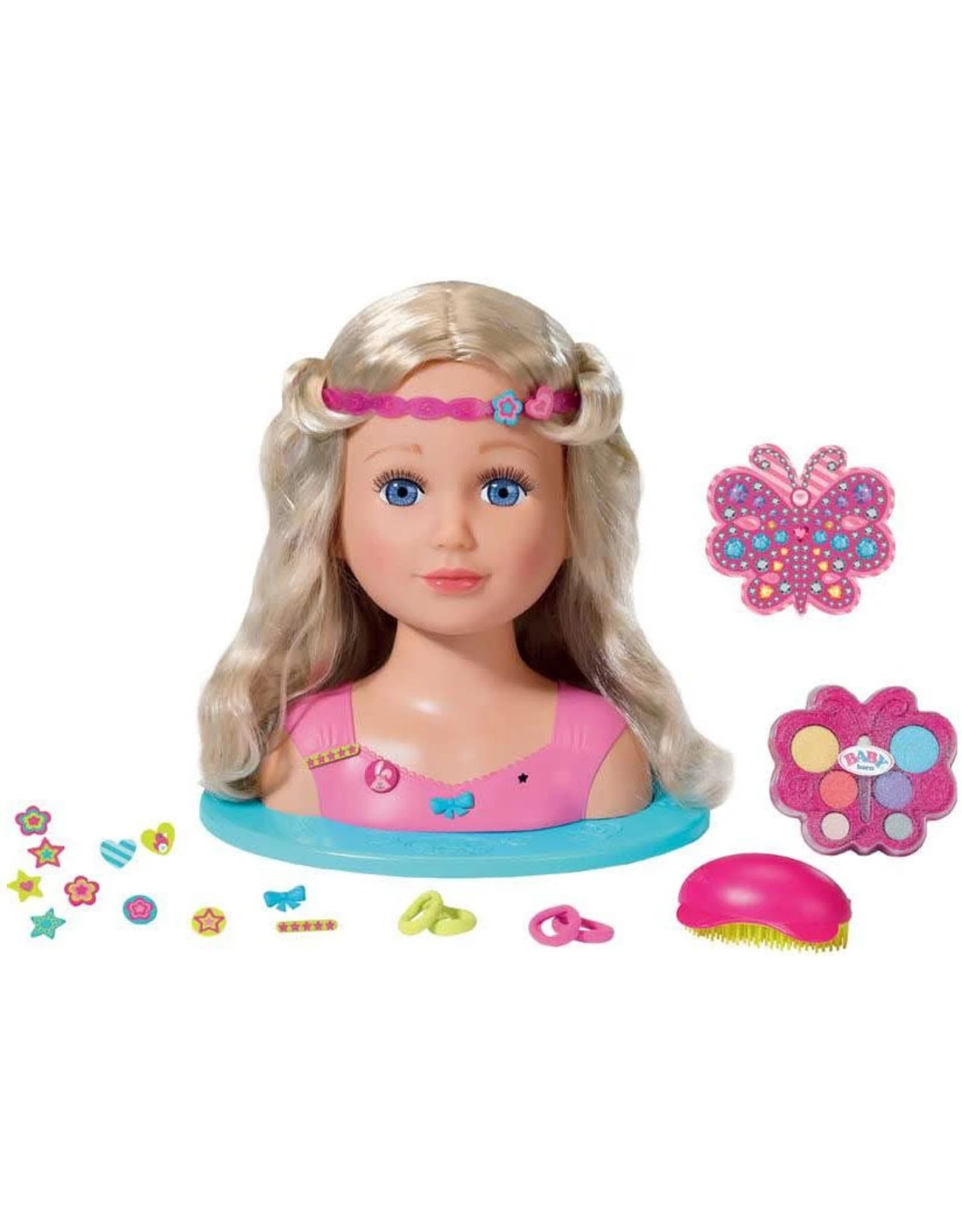 Jonge stylisten en make-upartiesten kunnen geweldige kapsels maken met het 27 cm hoge kaphoofd. Laat je creativeit de vrije loop met behulp van de accessoires, zoals de haarborstel, make-upset in vlindervorm, 17 pins, hoofdband, strass-set op vlinderprint, 4 elastische haarbanden.