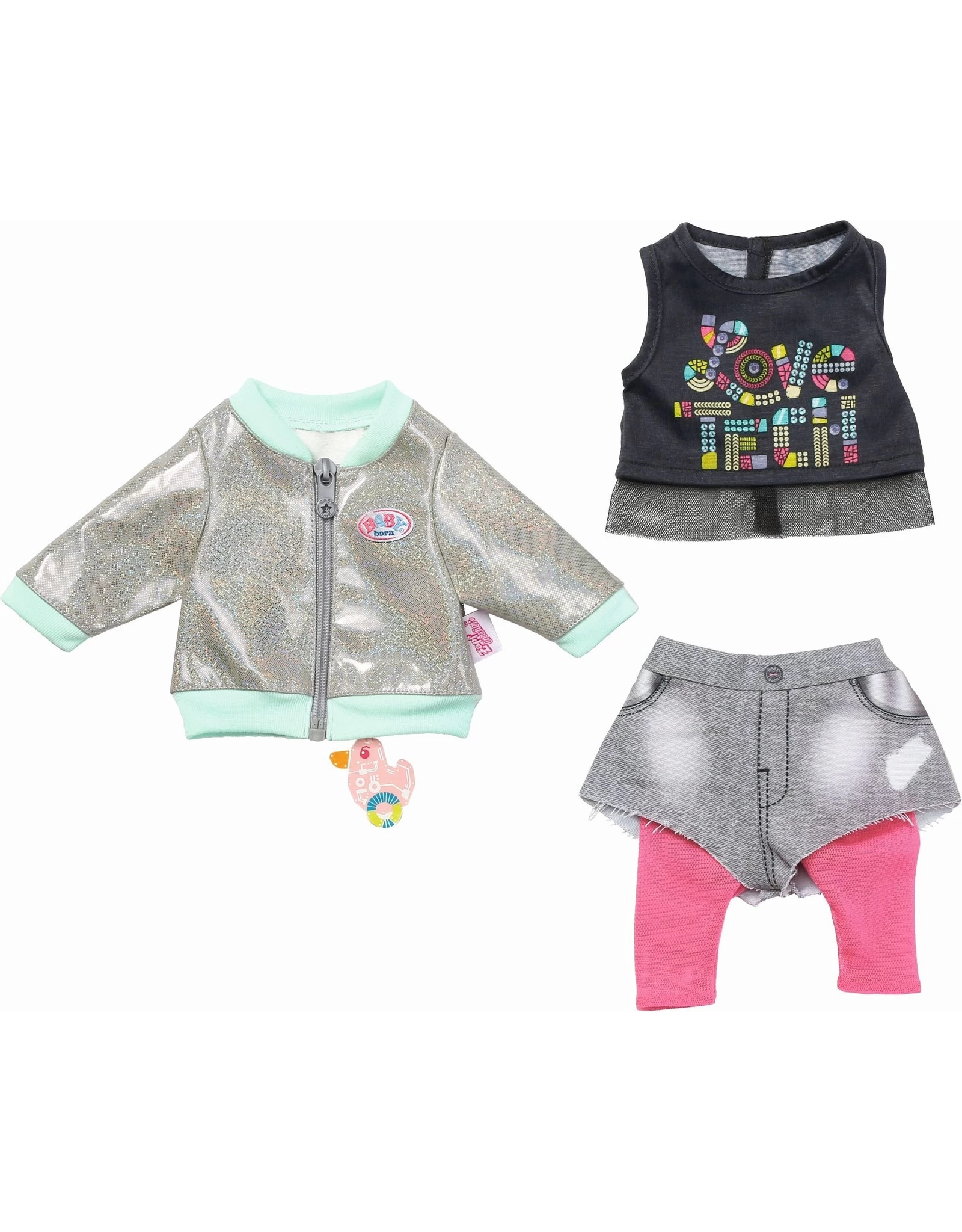 BABY born City Outfit (43 cm) met 2-in-1-broek met legging, shirt en jasje.