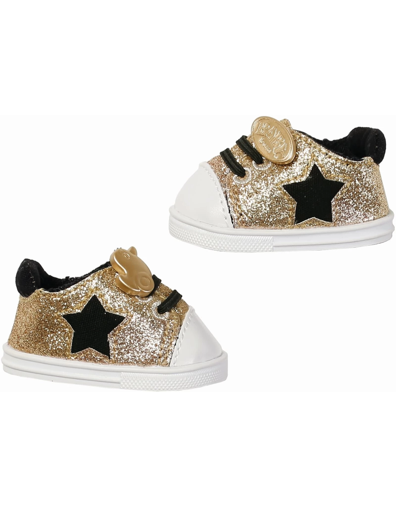 “Glitters zijn een must-have en de nieuwste trend!” BABY born’s broer maakt vaak grapjes over haar en haar zus wanneer ze iets dragen wat hij ‘glitter-flitter’ noemt. Maar soms trekt hij zelfs ook stiekem die sprankelende sneakers aan. Ze zien er wel heel cool uit. De enkelhoge schoenen sprankelen in zilver en de platte sneakers in goud. Beide modellen hebben een zwarte voering, zwarte veters en schattige zwarte sterren aan de zijkant. De kleine modepopjes moeten zeker wat glitters in hun kledingkast hebben hangen.