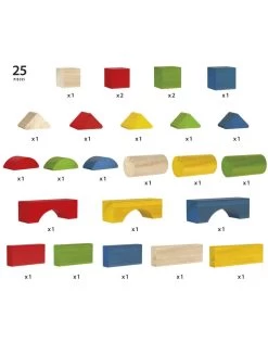 Zet jouw kleine architect aan het werk met deze 25-delige set, inclusief 7 verschillende vormen en verschillende kleuren. Stapel ze op elkaar, naast elkaar, hoe je maar wilt.