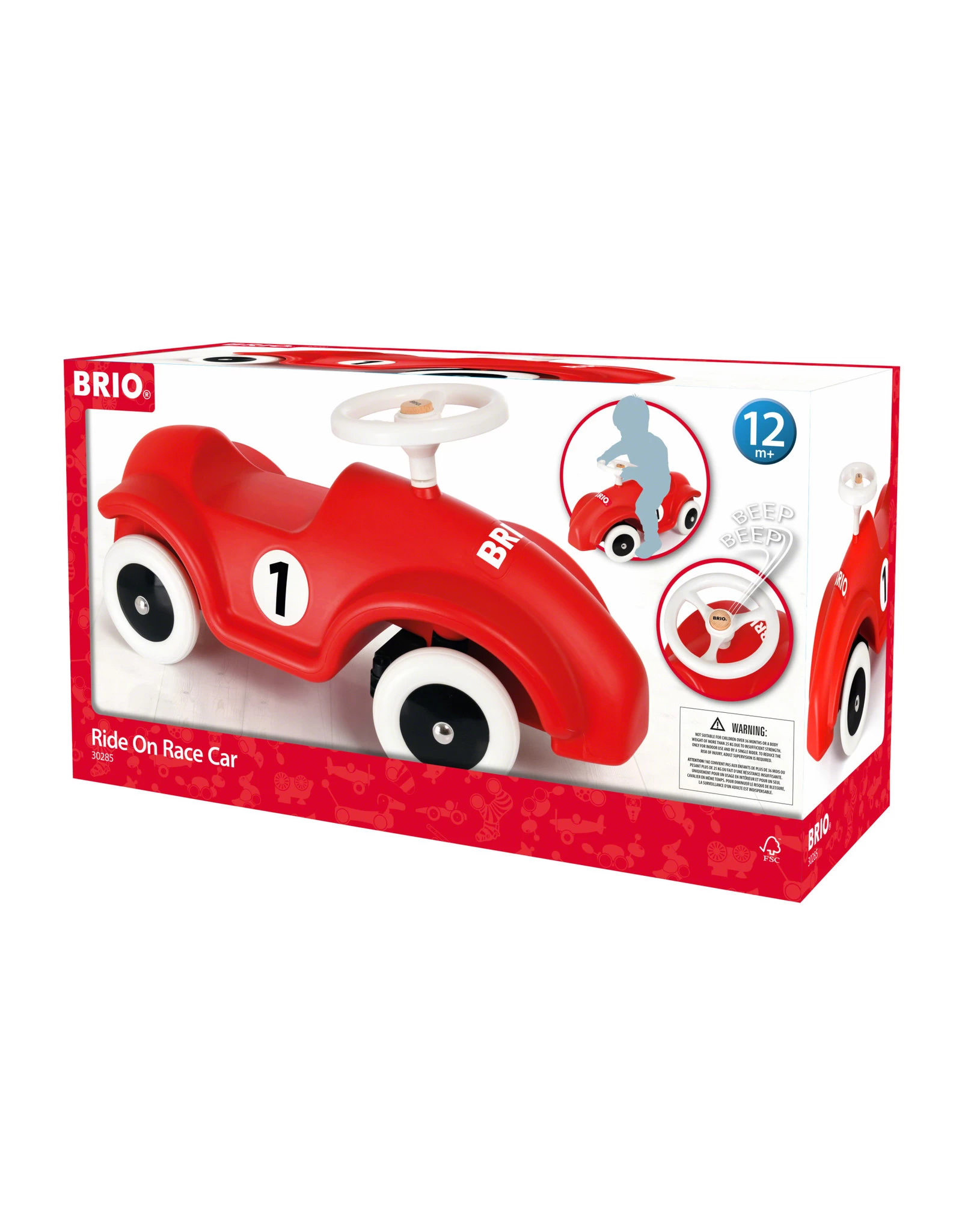 Deze Loopwagen Raceauto met klassiek BRIO-design, een gestroomlijnd rood chassis en witte wielen is perfect voor peuters. Je krijgt het gevoel echt door het huis te racen op deze auto. Vergeet niet te toeteren als je iemand passeert!