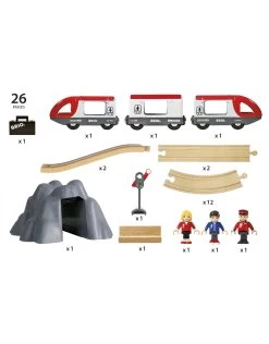 Alles wat je nodig hebt om je eerste BRIO-spoorweg te bouwen en er eindeloos mee te spelen. Begin met een spoor in de vorm van een acht, zet de tunnel in het midden zodat je er onderdoor en overheen kunt rijden. Gebruik het stop- en startsignaal om de trein tegen te houden en de passagiers aan boord te laten gaan. Als je het spoor op andere manieren wilt uitbreiden, kan dat met de beginners treinset. Voor nog meer speelplezier.