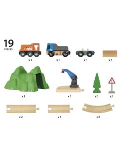 Iedereen instappen! Bouw je eerste BRIO treinwereld met deze nieuwe lift & load starterset A. Er zit heel wat in: een kraan, truck, locomotief, wagon met lading en zelfs een waarschuwingsbord, boom, en een kleine berg met tunnel om doorheen te rijden! Los de lading van de truck met de kraan, laat de kraan draaien en zet de lading op de trein. Sluit aan bij alle producten van BRIO World.
