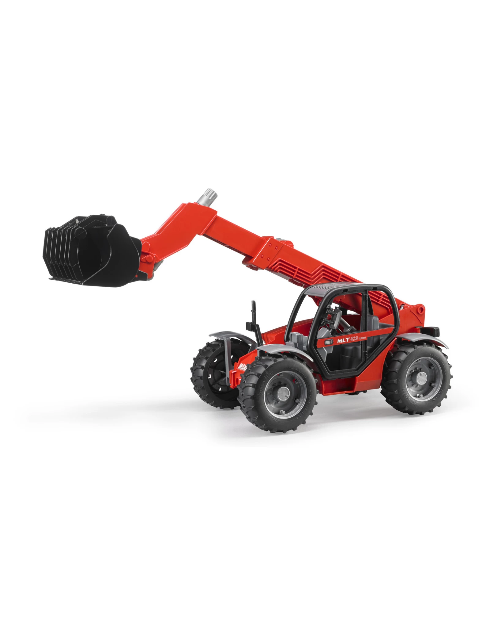Voor de Manitou MLT 633 van Bruder is geen plek te hoog. De verreiker kan op de hoogste plekken komen om verschillende voorwerpen te grijpen. De arm van de Manitou is te bedienen met verschillende knoppen voor een zo realistisch mogelijke speelervaring. De telescooplader is volledig gemaakt van duurzaam kunststof waardoor hij ideaal is om buiten mee te spelen. Verder is het ontwerp erg gedetailleerd. Zo is het bijvoorbeeld mogelijk de motorkap te openen om de motor te inspecteren.