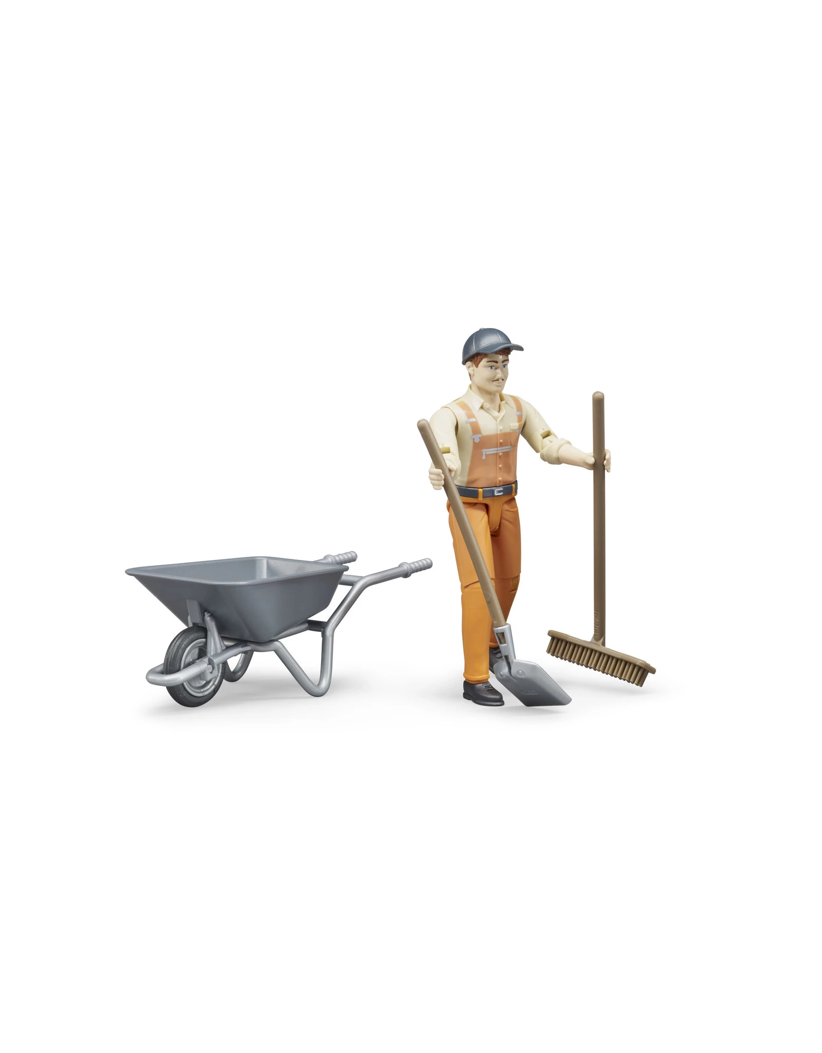 De activiteiten van gemeentelijke arbeiders zijn zeer gevarieerd. Zij beveiligen bouwplaatsen en ongeval scènes, inspecteren wegen op schade en verzorgen kleine bouwwerkzaamheden. Ze maken schoon, zorgen voor parken en tuinen en maken de wegen schoon en strooien. De nieuwe set gemeenteambtenaren is de ideale aanvulling op tal van bedrijfsvoertuigen en bouwvoertuigen van BRUDER om dit brede scala aan activiteiten realistisch na te bootsen. De figuur bevat bewegende lichaamsdelen, een kruiwagen, schop en bezem voor creatieve speeltijd in kinderkamers.