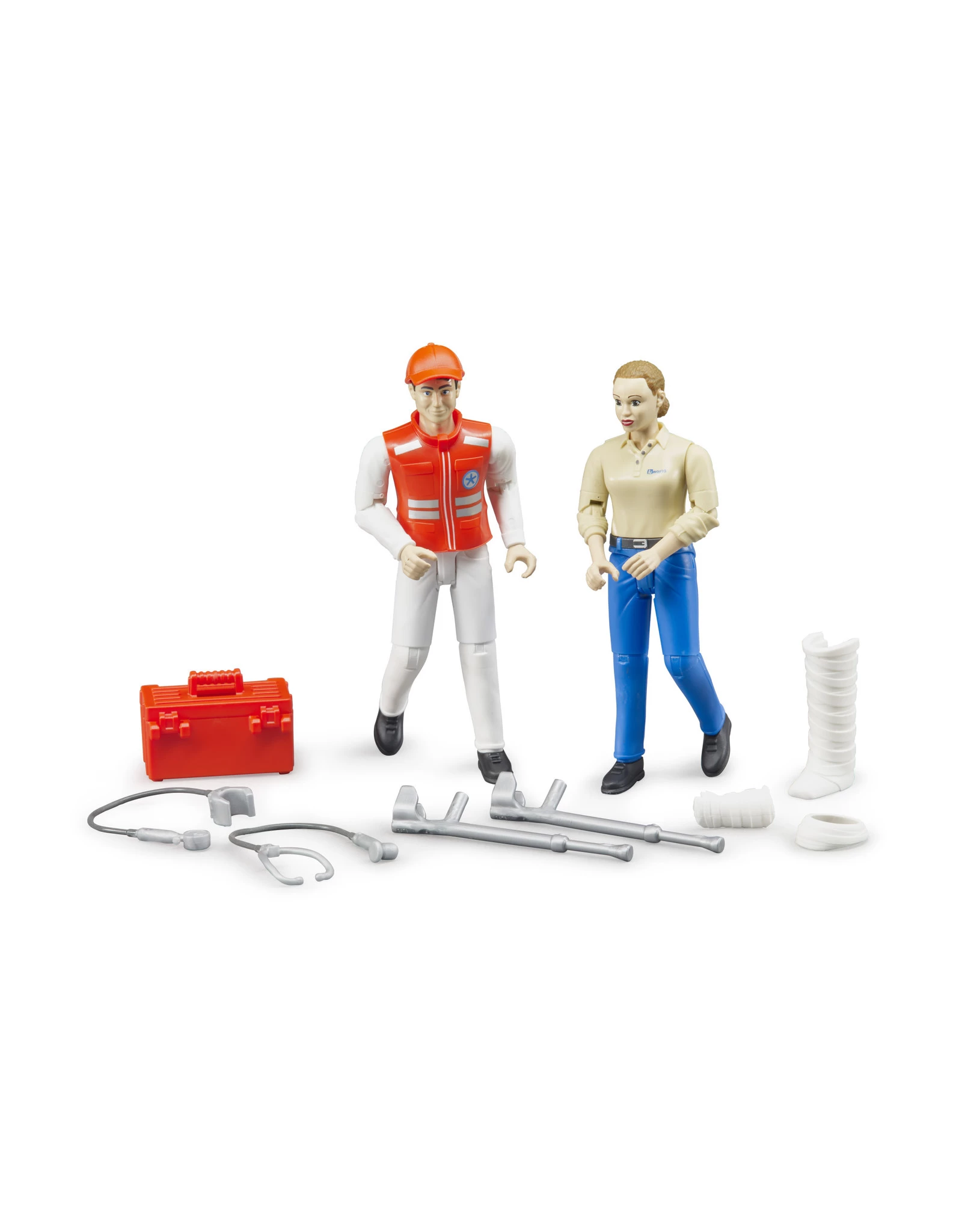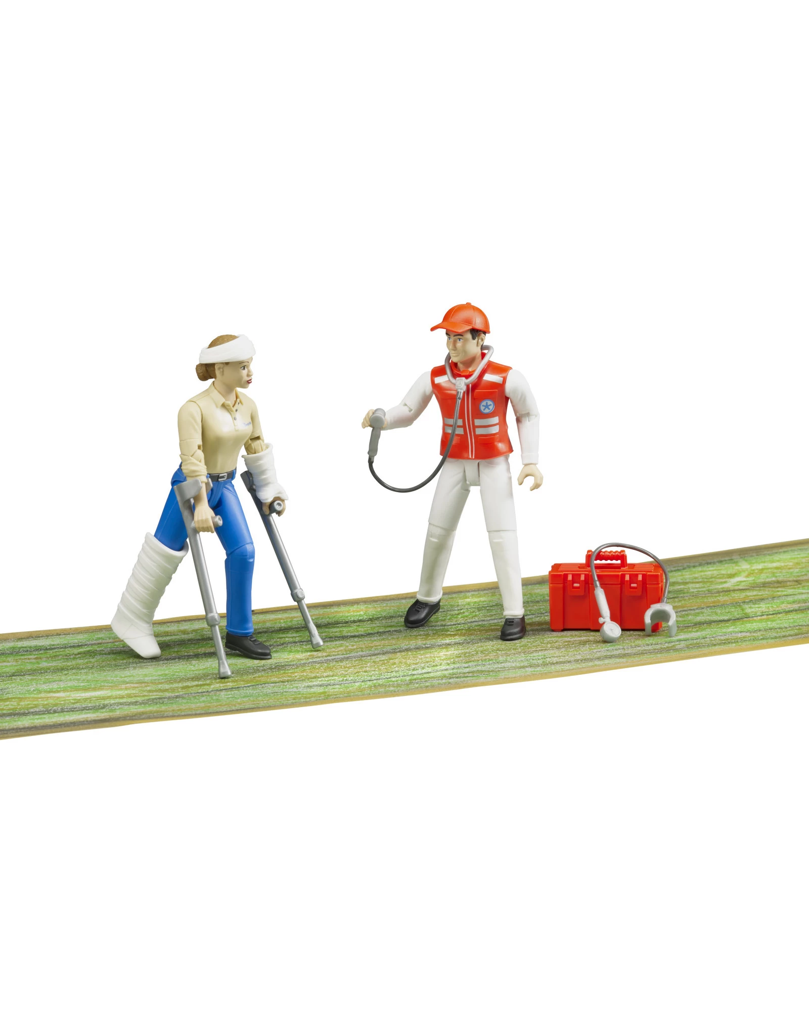 Deze ambulance broeder met patient van Bruder maakt het spelen nog realistischer. En wat is er leuker dan de realiteit te kunnen combineren met de oneindige fantasie van een kind. De patient heeft verschillende verwondingen waaraan ze is verholpen. Zo heeft ze gips om het arm en het been en een mooi verband om het hoofd. Om toch een beetje te kunnen lopen heeft Bruder haar ook een set krukken gegeven. De ambulance broeder kan de patient vervolgens goed in de gaten houden met de bloeddruk meter en de stethoscoop. Mocht de ambulance broeder nog moeten ingrijpen dan heeft hij een tas vol apparatuur bij zich. Als de patient weer op de been is dan kan je het gips en verband gemakkelijk verwijderen. Het is dus ook mogelijk om het gips en verband bij andere Bruder figuurtjes aan te brengen. Deze set is de ideale uitbreiding op de ambulance van Bruder maar zorgt ook op zich zelf voor veel speelplezier.Â