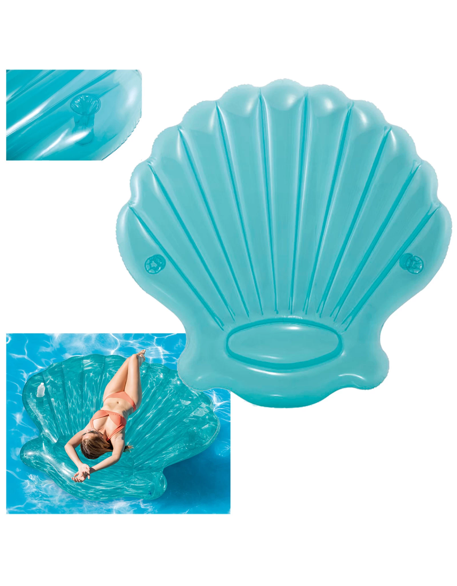 Dobber heerlijk op het water op dieze blauwe schelp luchtbed van Intex. Het is groot genoeg om op te kunnen liggen. Aan beide zijkanten van het luchtbed zit een houder om jouw drankje in te bewaren,