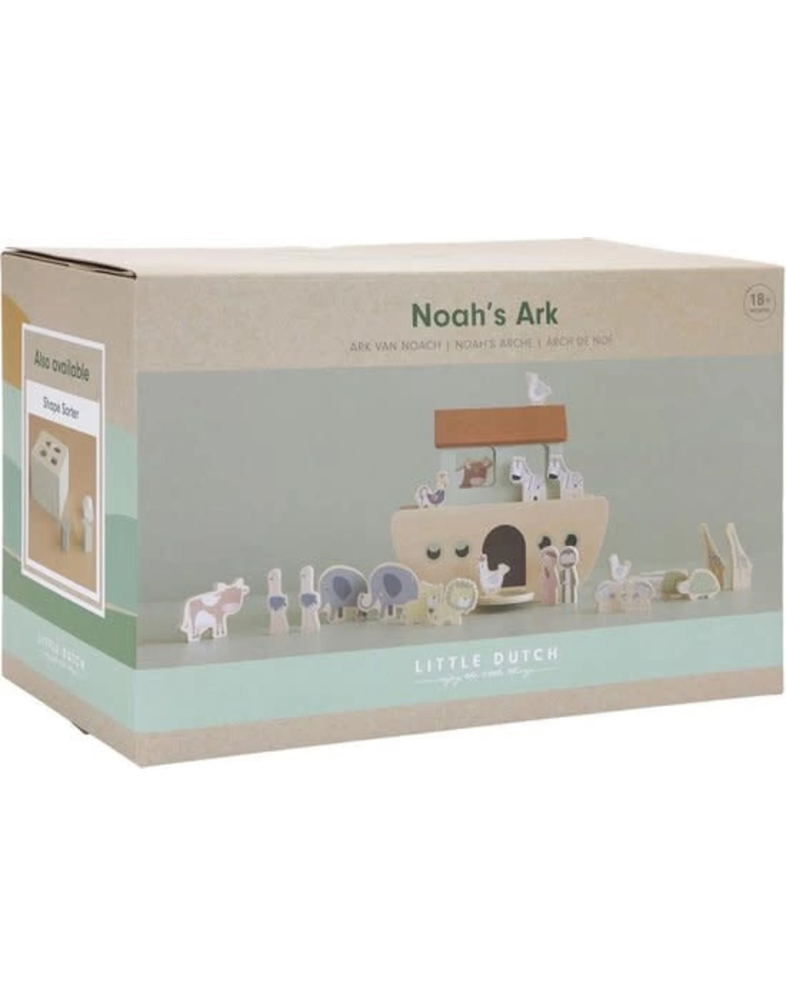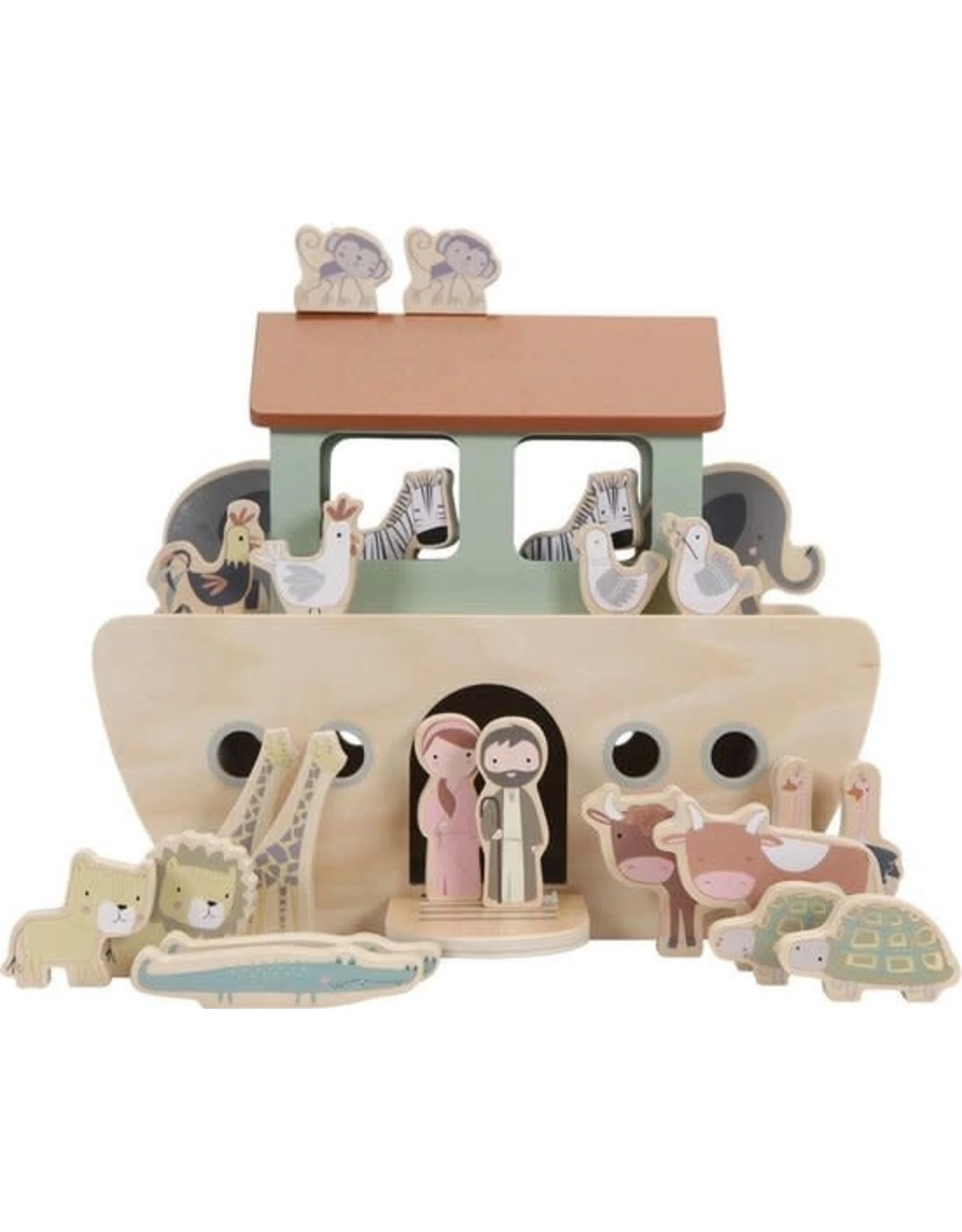 Iedereen aan boord! Speel het verhaal van de Ark van Noach na met deze mooie speelset van Little Dutch. Help de dieren elkaar te vinden en maak ze klaar voor hun reis. Elke passagier heeft een gelijk vriendje om samen mee te reizen. Deze 25-delige set bevat de Ark met een deur, een dek dat omhoog kan worden gelift om alle dieren aan boord te brengen. Noach neemt zijn vrouw en een grote groep dieren mee op reis over de oceaan: 2 leeuwen, 2 olifanten, 2 zebra’s, 2 apen, 2 duiven, 2 krokodillen, 2 schildpadden, 2 giraffen, 2 struisvogels, 2 koeien, een kip en een haan. Deze speelset van de Ark van Noach moedigt rollenspellen aan, en verbetert de fantasie en woordenschat, terwijl je kindje dit klassieke verhaal leert. Wordt geleverd in full-colour doos. Geschikt voor kinderen vanaf 1,5 jaar.