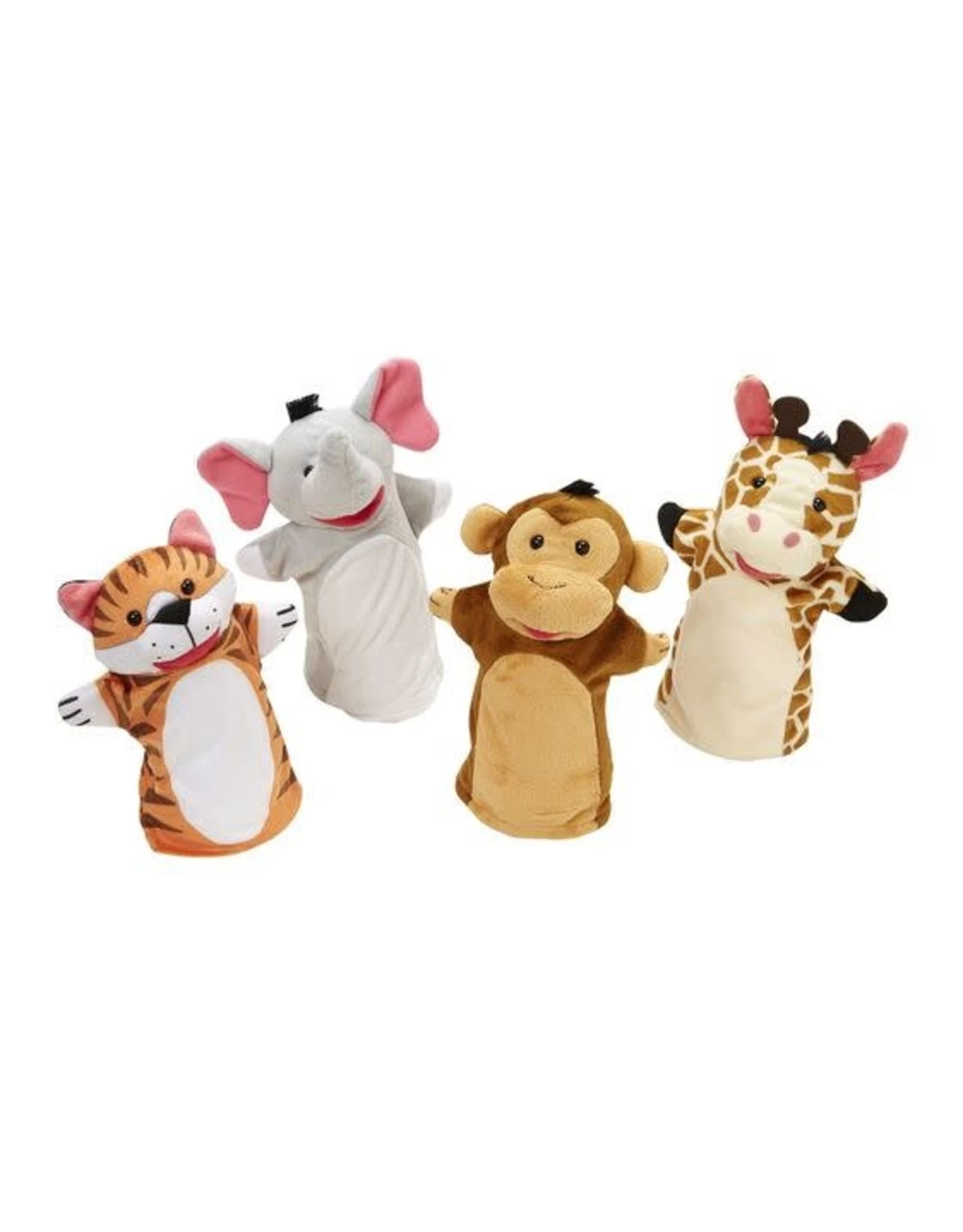 Deze collectie met vier schattige handpoppen is geschikt voor het hele gezin: een perfecte speelset waarmee kinderen en hun ouders samen een rollenspel kunnen spelen! De vier eenvoudige handpoppen met een dierenthema zijn hartstikke leuk om scènes mee te verzinnen, nieuwe woorden te oefenen en tijd met elkaar door te brengen. Ze zijn ook geweldig voor de motoriek en het zelfvertrouwen! Deze zachte, leuke handpoppen, gemaakt met wasbare, duurzame stoffen met felle patronen, zullen jarenlang het lievelingsspeelgoed zijn van uw kinderen.