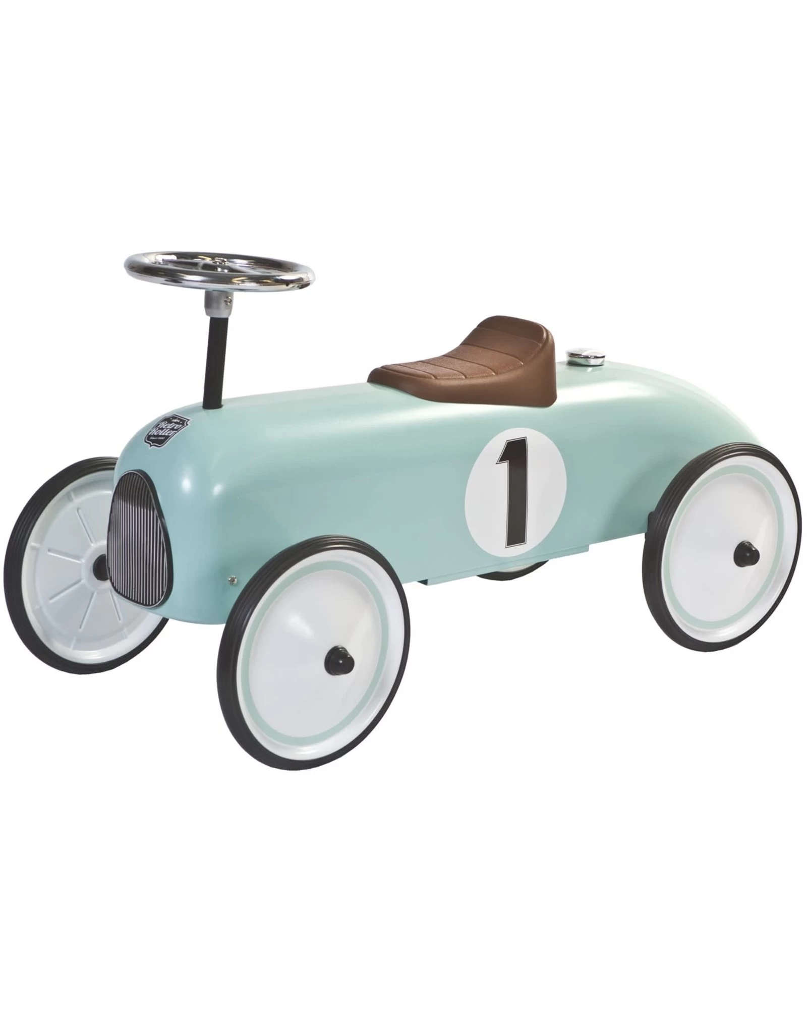 Deze prachtige Colin Retro Roller loopauto in mintgroene kleurstelling is gebaseerd op de stijl van de formule 1 wagens van vroeger. Super leuk voor jongens en meisjes. Urenlang speelplezier voor zowel binnen als buiten gegarandeerd. De loopauto is voorzien van metalen wielen en rubberen banden en een kunststof zitting. Leuk als verjaardagscadeau, maar ook heel leuk als woonaccessoire! De loopauto is volledig van metaal en eenvoudig in elkaar te zetten en te monteren. Jouw kindje kan zó opstappen en karren maar! Geschikt voor kinderen vanaf 24 maanden. Afmeting: 75 x 40 x 40 cm. Draaggewicht: 20 kg.