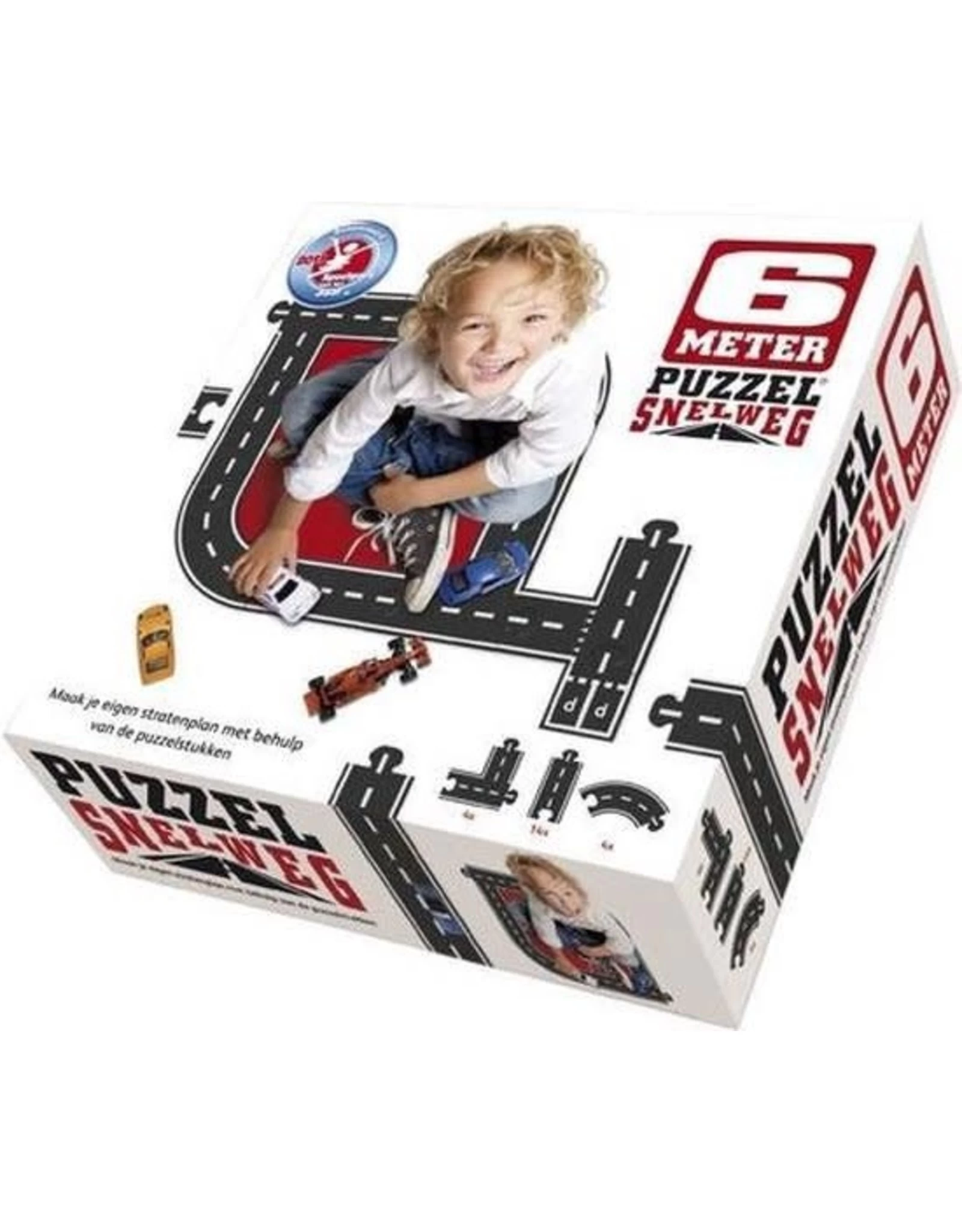 Maak je eigen weg van wel 6 meter lang! De stevige puzzelstukken zijn dubbelzijdig: de ene kant een snelweg, de andere kant een zandweg. Superleuk om met je eigen autootjes of treintjes mee te spelen.
