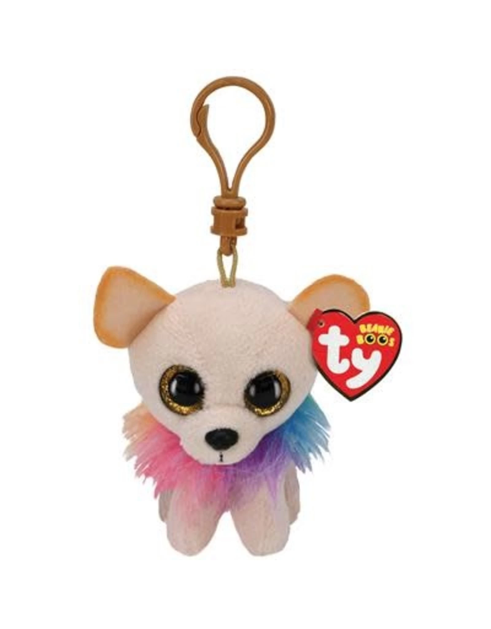 Ty Beanie Boo’s Clip Chewey is een pluche chihuahua aan clip. I’m small and can easily fit in your pack. If you leave it in there, I may eat your snack! Chewey is jarig op 27 oktober. Totale lengte ca 7 cm.