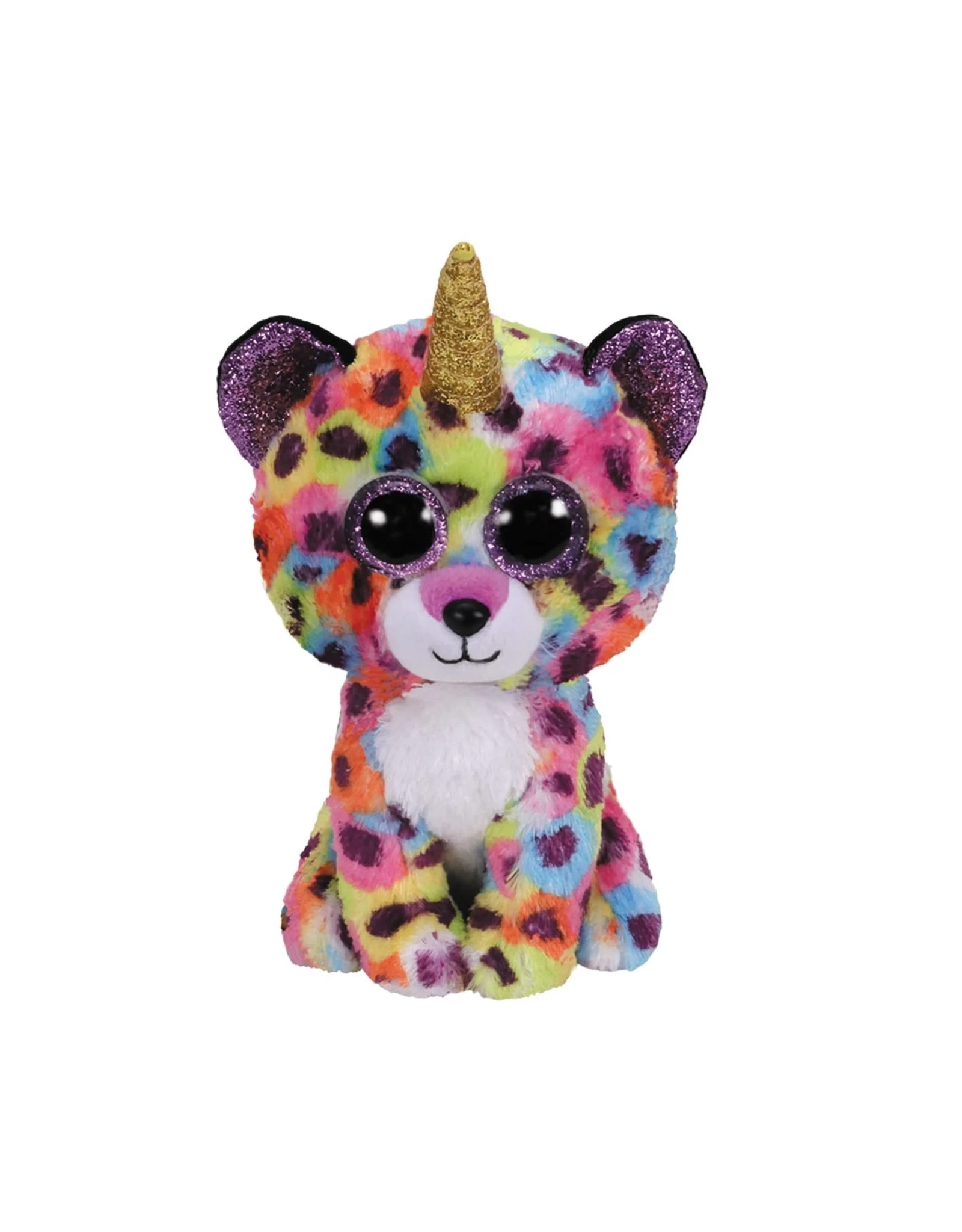 Ty Beanie Boo’s Giselle is een 15 cm grote multicolor unicorn luipaard. On my crown you’ll see a horn, do you think I’m a unicorn? Giselle is jarig op 12 mei.